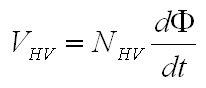 Where Φ is the magnetic flux in the core, VLV is the voltage across the