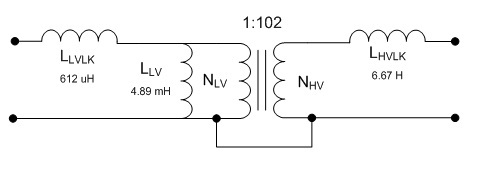 coils were measured to be 612 uH and 6.76 H, respectively. Adding these