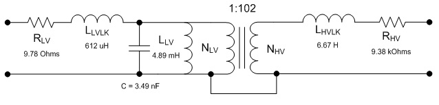 and 8.7 kΩ at DC.) The model, including the winding resistances at