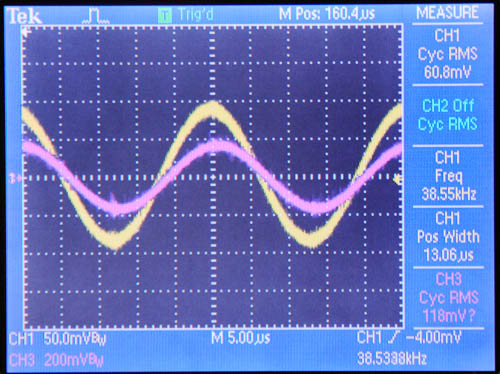 Here, the self-resonant frequency for my coil is determined to be 38.55