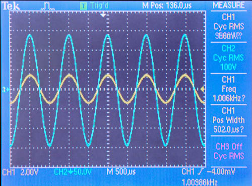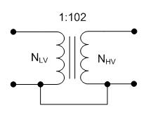 voltage coil. Dividing 100 V by 983 mV results in a turns ratio of