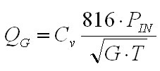 in the inlet pressure in PSIA, G is the specific gravity of the gas,