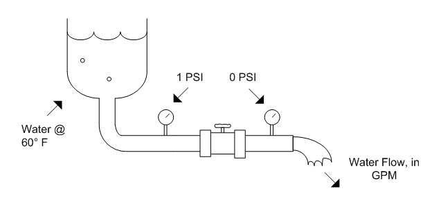 flow rate (in gallons per minute) of water at 60 degrees Fahrenheit,
