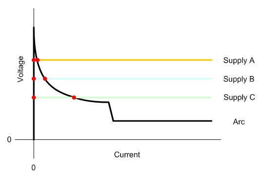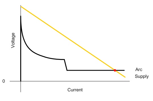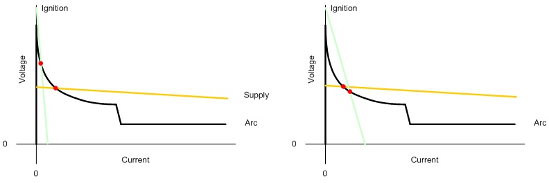 supply to be able to provide current to the arc. In Fig. 7b the lower