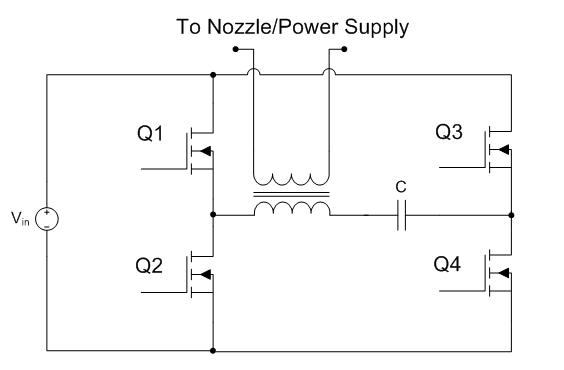 Q4 are turned on, the inductor side is pulled high and the capacitor