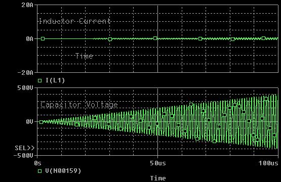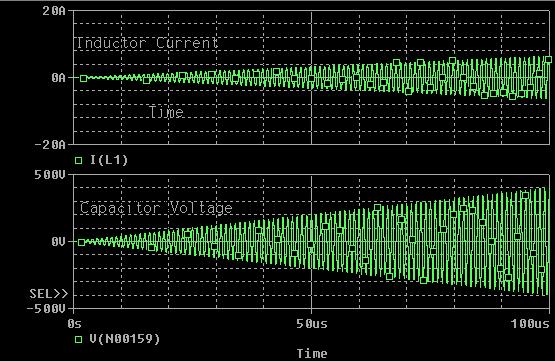 inductance of 10uH with a resonant frequency of 1 MHz, excited by a +/-