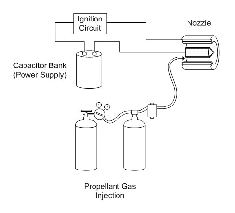 capacitor bank. The high speed propellant gas leaving the nozzle