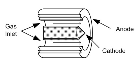 electrodes is a hollow cylinder with a smaller cylinder centered
